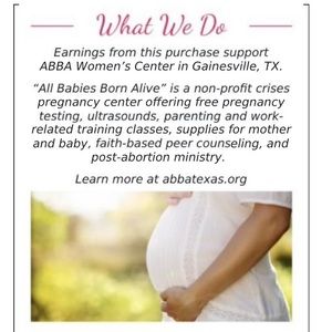 This item is from Second Chance Resale. Earnings from this purchase support the ABBA Women’s Center in Gainesville, TX. “All Babies Born Alive” is a non-profit crises pregnancy center. Let’s all come together to support women in need