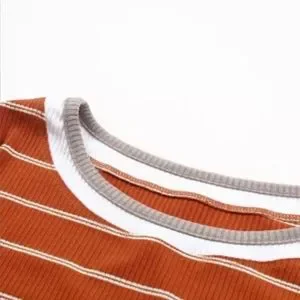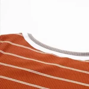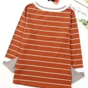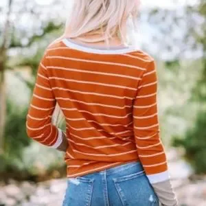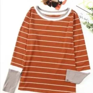 New Brown Extend Color Block Cuffs Rib Knit Striped Pullover