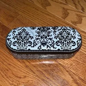 Brighton Sunglass Case Tin Black White Floral Flip Top Metal