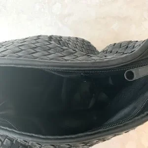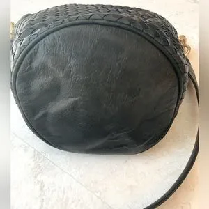 Black Woven Leather Vintage Zippered Bucket Purse