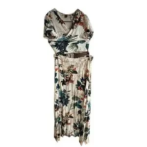 Shein Women's 2 Piece Boho Twist Front Top and High Split Maxi Skirt Set