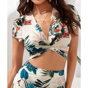 Features: crop top, boho, split skirt, v neck, two piece outfit