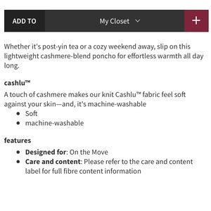 NWT - Lululemon Be At Ease Poncho - One Size