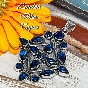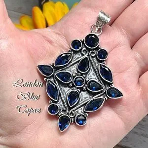 London Blue Topaz Pendant Gemstone Crystal Handmade 925 Silver Bohemian Ethnic