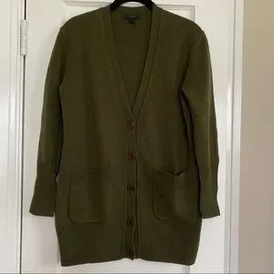 J.Crew Boyfriend Cardigan in Olive. See photos for material and slight pilling (easy removal with a sweater comb).