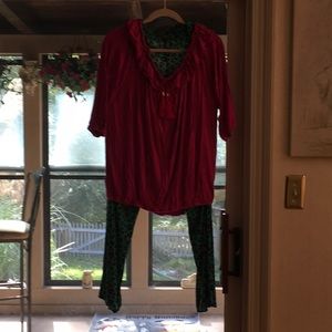 EUC,IMAN PALAZZO PANTS 1XP,TOP RUCHED COLLAR ELASTIC BOTTOM 1X, Set