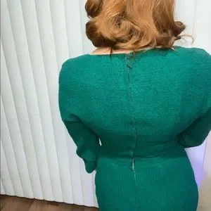 Vintage Emerald Green Joan Mad Men 1950s 3/4 Sleeve Dress