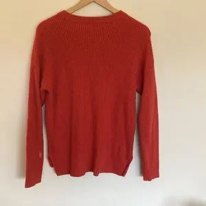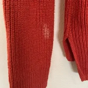 Okay Condition. Some slight piling and there is a bleached spot on the bottom of the left sleeve.