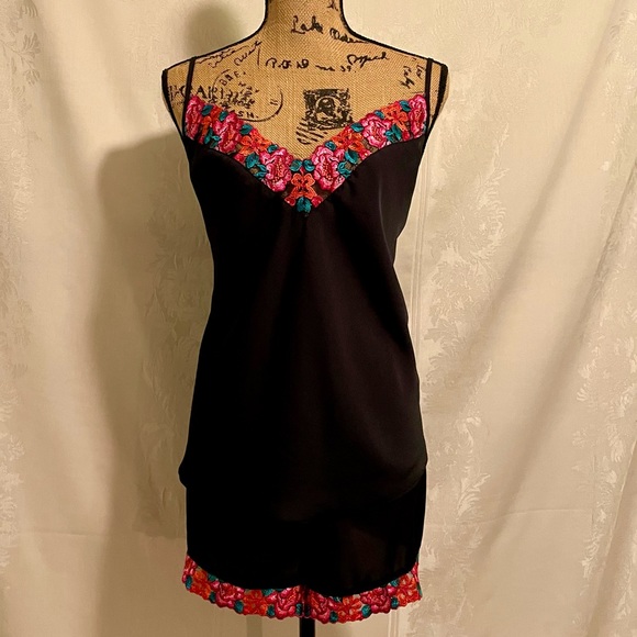CLOSET CLOSING!!!YOU WANT IT, I DONT, MAKE AN OFFER!!!🎁I.N.C. INTERNATIONAL CONCEPTS🎁CAMI TAP PANT SET in BLACK SATIN WITH MULTI COLOR LACES. SZ LADIES US XXL.