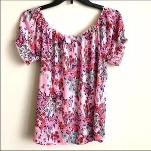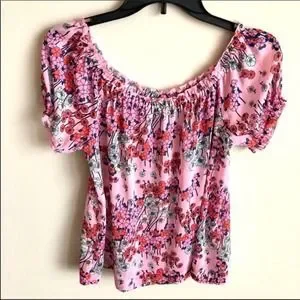 ModCloth Semi Sheer Off the Shoulders floral Top Pink background, super pretty, feminine and flowy.