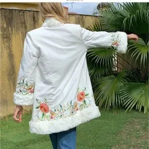 Gorgeous white velvet with embroidery. Such a beauty. Size L new with tags.