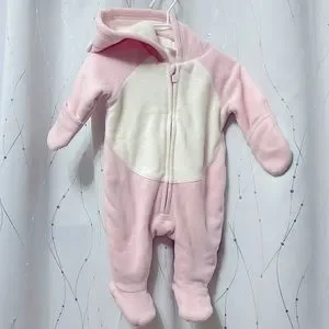 EUC Old Navy | pink, white infant’s unicorn snowsuit, zippered with flip mittens