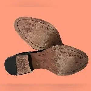 Donald J Pliner Pronto booties in excellent pre-loved condition. Size 6.5M. Black velvet with studded embellishment design at the toe. Elastic sides at the ankle add extra comfort and ease of wear.