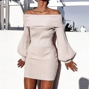 Off Shoulder Pink Dress Sweater Knitted Mini Dress. NEW NWT
