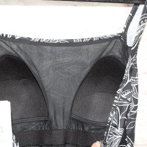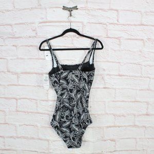 LL Bean Black Botanical Squareneck Tanksuit One-Piece Swimwear Size 12