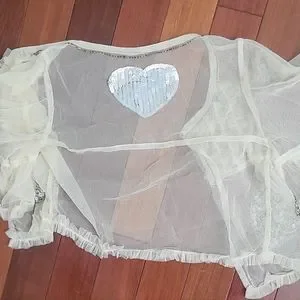 Beautiful cream sheer girls bolero with beaded & sequin accents & ruffles.