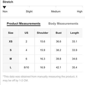 XS=0 S=2/4 M=6/8 L=10/12
