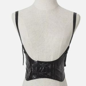 Underbust Harness black wide vegan patent leather corset suspenders buckle steampunk waist statement belt, new no tags