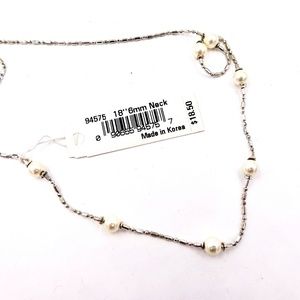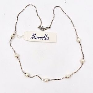 MARVELLA Silver Faux Pearl Station Necklace 18 1/2" Long NWT