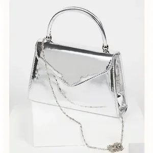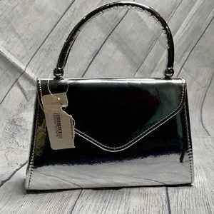 Inspired by decades past, this classic mini tote is featured in a statement metallic faux leather.