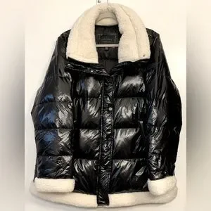 This cozy black shiny puffer jacket is a must for any stylish wardrobe. XL in mint condition