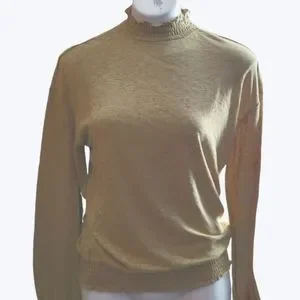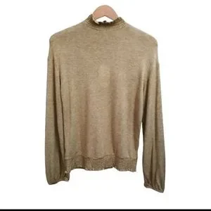 Women's Long Sleeve High Neck Smocked T-Shirt - A New Day™ XXL/Tan