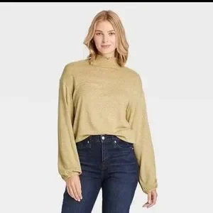 Elevate your transitional season wear with the Long-Sleeve High-Neck Smocked T-Shirt from A New Day™. Fashioned in solid hue with a heather finish, this women's long-sleeve tee is knit from a soft and lightweight fabric to give you a style staple that you can wear through the seasons. Tailored in relaxed fit, the pullover T-shirt features a high neck and a below-waist hemline accented with smocked detailing for a sweet stay-put design, while the bishop sleeves lend some statement style to your outfit. Layer it over a range of bottoms to let the smocked texture to do the talking