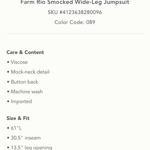 🌿|NWT| Farm x Anthropologie Smocked Wide Leg Jumpsuit