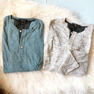 Banana Republic 2 Shirts Bundle Moisture Wicking Henley Long Sleeve Gray Blue