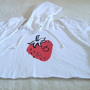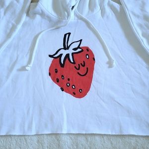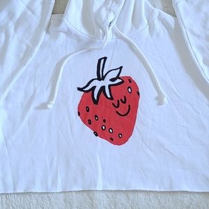 Color of hoodie is white with smiling😊 red♥️ strawberry🍓 graphic on front