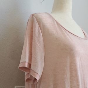 Very nice, soft and comfortable fabric. Unique side gathered detailing. short sleeves. round collar. Soft pink color. 💗