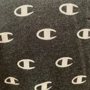 Neutral charcoal grey jersey fabric with white insignia print