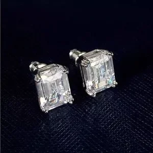 New 925 Silver Emerald Cut Engagement Earrings for Women Bridal Birthday Party
