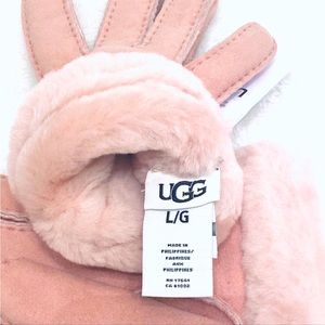 🎁UGG Premium Fur-lined Sheepskin Logo Gloves, Size Large, Pink Crystal (NWT)