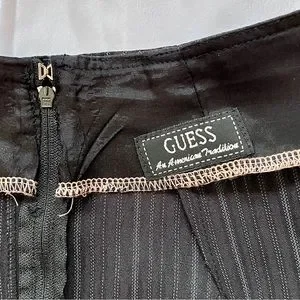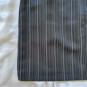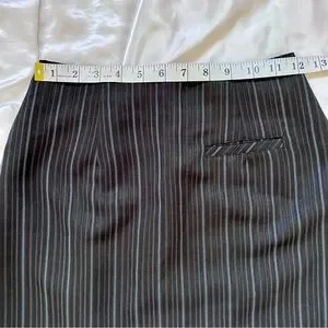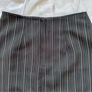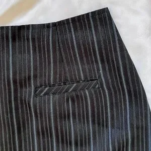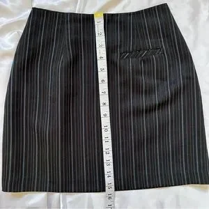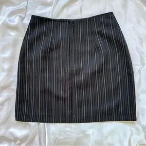 Super cute dress suit fabric mini skirt with zipper in the back as well as hook and eye closure. It has a tiny little pocket on the front just big enough for a lipstick ! This was gifted to me but unfortunately is a little too big and I can’t bring myself to alter it. Very cute dressed up or down, it gives me Buffy vibes. Office siren