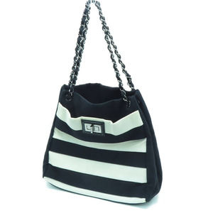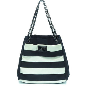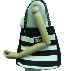 Chanel Black and White Striped Reissue Tote Shoulder Bag Nylon Canvas
