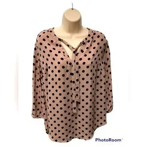 🌸Torrid Georgette Bowtie Blouse Blush Polka Dot size 1X
