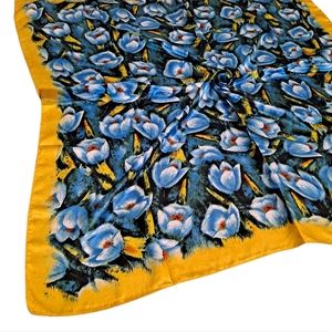💖 2/$30 Boho blue yellow Floral square satin hair head & neck scarf