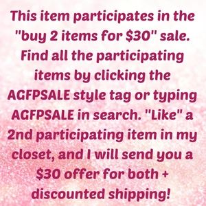 💖 To find all items participating in the 2/$30 sale, type AGFPSALE in the search bar on Poshmark or click the AGFPSALE style tag on this listing