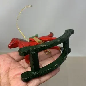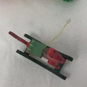 Wooden ornaments are used/vintage, and the 3 round ornaments are new (no tags).