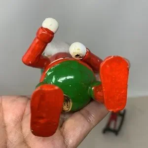 5 pc VINTAGE Christmas tree ornaments: Santa, rocking horse, and 3 round balls