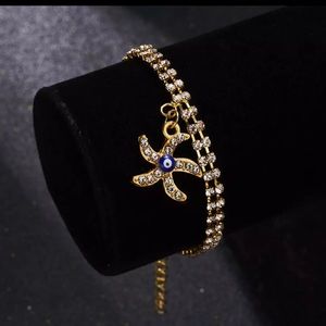 Faux Gold Starfish Diamond Bracelet with Blue Evil Eye Bead. Make me an offer.