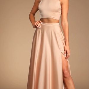 Dusty Pink crop top and matching skirt. Ideal for wedding / black tie event. Satin-like fabric. Never worn. Size L