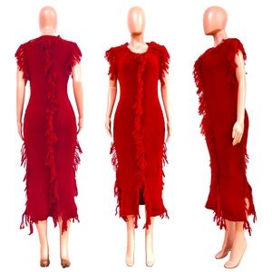 NEW Double Take Red Knit Sleeveless Fringe Sweater Dress