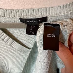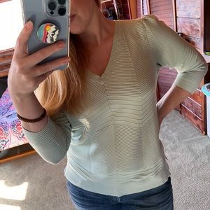 Tahari pastel green V-neck ribbed chevron short sleeve sweater Juliet large top