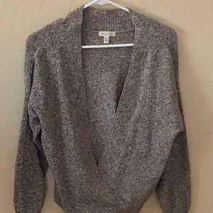 Silent + Noise Open Front overlap Sweater Grey Brown
