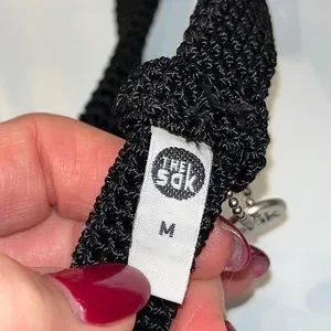 THE SAK BLACK Belt Woven Women's Size Medium 1” wide silver buckle TEXTURED BELT