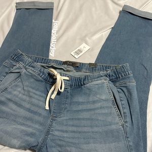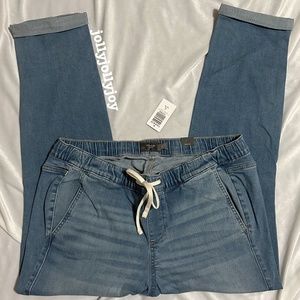 NWT. Super Soft Denim, maximum stretch level, mid-rise, eased fit from hip to hem, drawstring waistband, no hardware or buttons for optimal comfort, 4-pocket design.