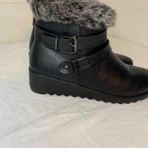 Short Fur Cuffed Black Boots. Size 7. **NEW**. Inner Zipper. 2" heel. Very lightweight.