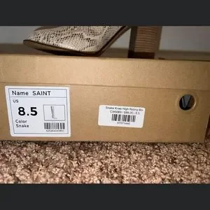 Saint Boots featuring the trendiest style with a snakeskin pattern, knee high height, and block heel. Everyone is going to adore your snakeskin boots with your cute new boutique sweater this fall!